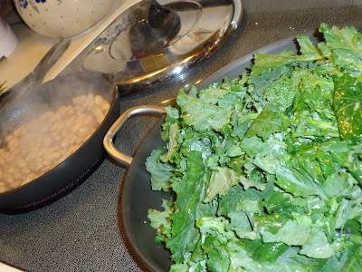 For the adults: A white bean base made with sauteed garlic, white beans, sea salt and a splash of balsamic vinegar topped with sauteed broccoli rabe, caramelized red onions and more garlic topped with roasted grape tomatoes. Sort of heavenly...I was experimenting with the broccoli rabe. I've never had it before. Turns out, I think spinach would be better. I don't like any bitterness in my greens.